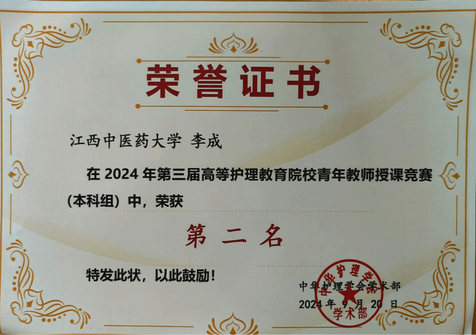 江中新闻网讯(通讯员 江黎)9月19-20日,由中华护理学会主办的第三届高等护理教育院校青年教师授课比赛在厦门举行,护理学院教师李成凭借出色的教学水平和专业技能在激烈的竞争中脱颖而出,荣获本科组第二名。