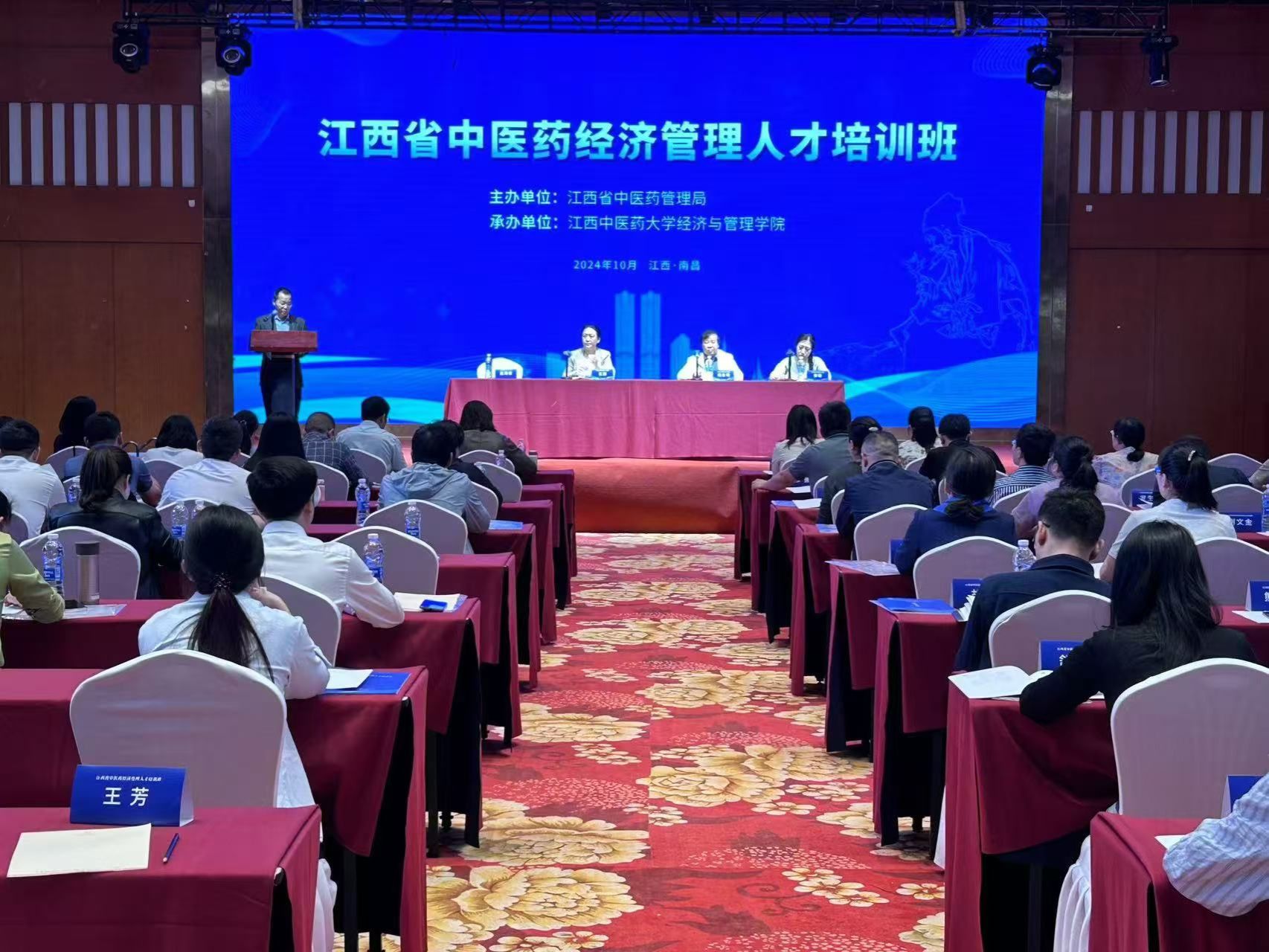 江中新闻网讯(通讯员 张寒英 涂璐菲)为进一步加强全省中医药经济管理队伍建设,共同探讨中医药经济管理理论与实践,不断提升中医药经济管理水平,更好地服务中医药传承创新发展,10月19日上午,由江西省中医药管理局主办,我校经济与管理学院承办的第一期江西省中医药经济管理人才培训班在昌开班。江西省中医药管理局教科处处长江蓉,我校经济与管理学院院长出席开班式并致辞,开班仪式由我校经济与管理学院副院长主持。来自全省各地市、各县区84家中医医院、中西医结合医院、中医药高等院校及卫生健康委员会的领导干部、财务负责人和业务骨干等150余人参加了培训。