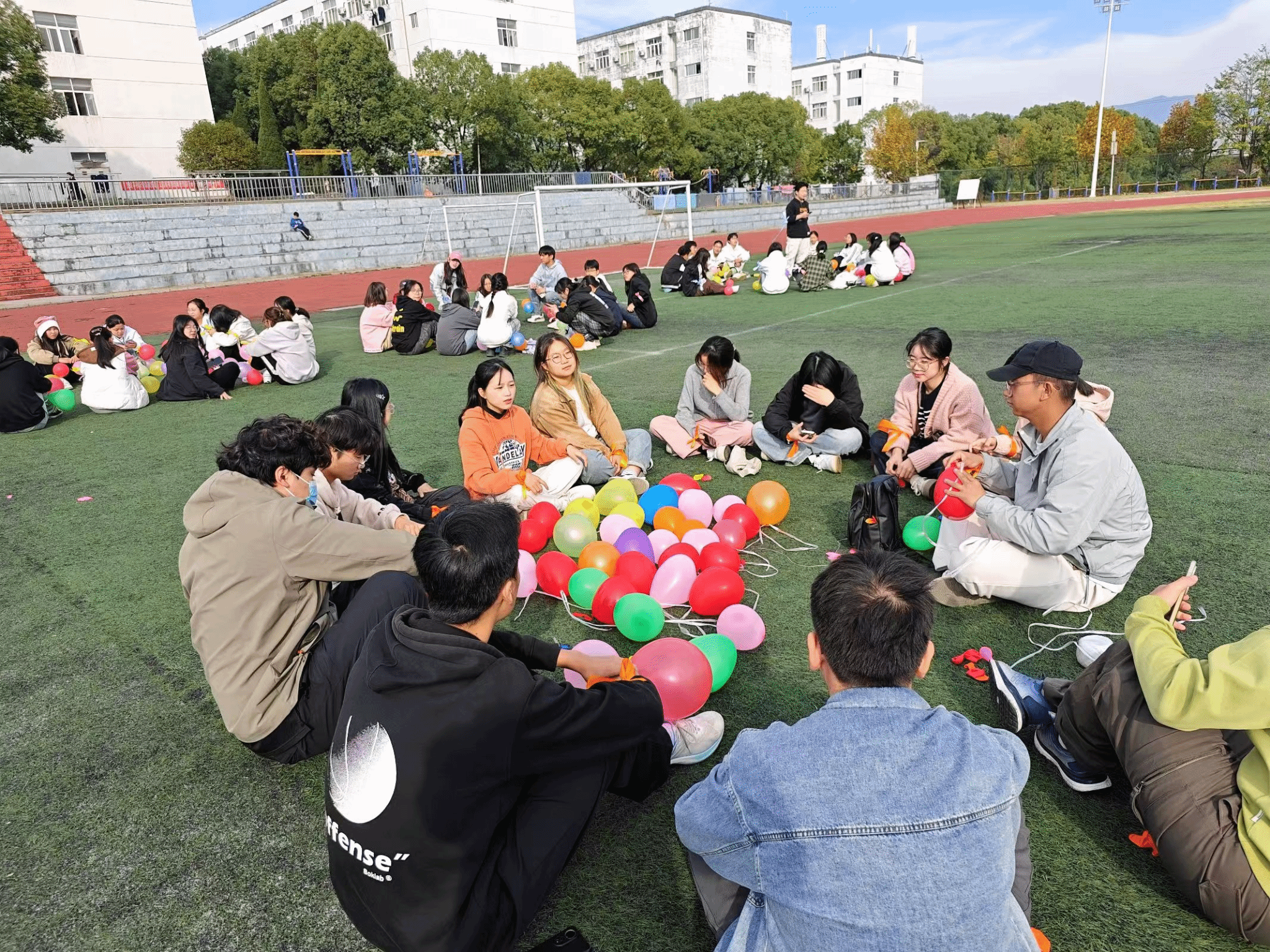活动以“疯狂踩气球”游戏作为开场,此游戏考验了团队成员间的协作能力,极大地活跃了场上气氛。随后的“漆扇制作活动”让同学们在动手操作中体验到了中华优秀传统文化的魅力。“猜歌名”比赛是活动的高潮之一,各组成员积极参与,展示了各自的音乐才能和合作精神。