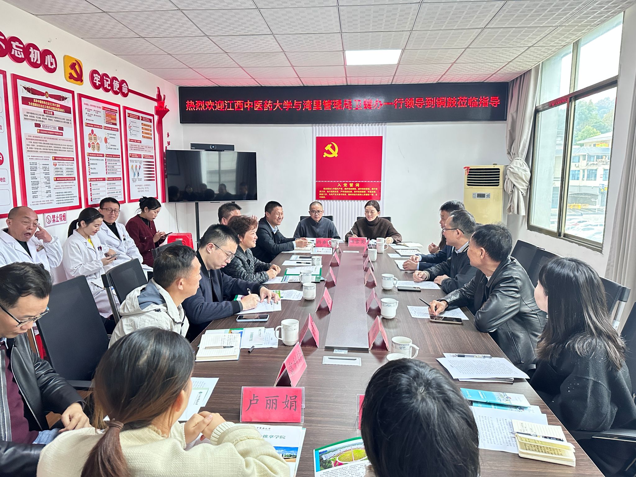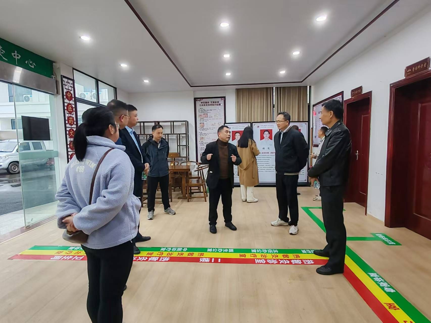 下午,学院一行与湾里管理局卫健办共同前往大塅镇卫生院热敏灸中心,卫生院负责人详细介绍了医院在中医药传承创新、医疗服务能力提升、热敏灸中心建设等方面的做法和成效,并实地考察了解了热敏灸中心的建设情况、工作环境、设施设备等。
