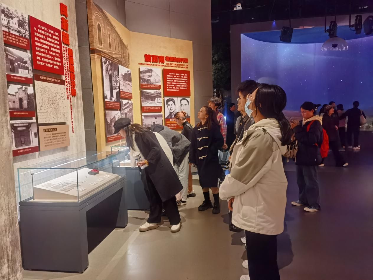 在红色文化馆内,同学们通过多媒体展示与场景再现,领略了革命文物的独特魅力,并被其背后的历史文化价值所深深吸引,通过珍贵的历史照片、实物展品以及模拟场景,深入了解了江西革命史的重大革命事件、重要历史人物以及感人至深的革命故事。同学们重温了八一精神、井冈山精神、苏区精神和长征精神等伟大精神,还理解了“不忘初心、牢记使命”的深刻内涵。