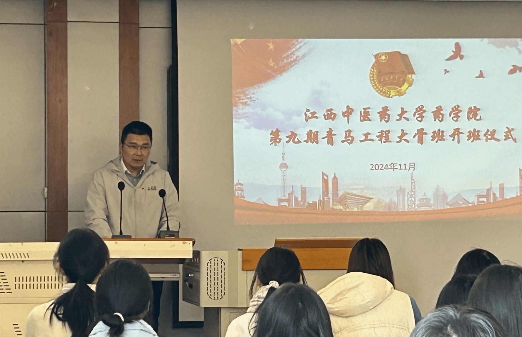 江中新闻网讯(通讯员 李璐 罗好)为深入学习贯彻习近平总书记关于青年工作的重要指示精神,持续提升青年学生的思想政治水平和实践能力,培养一批具有坚定理想信念、较高综合素质的青年马克思主义者。11月26日,药学院第九期“青马工程”大骨班开班仪式在C401举行。