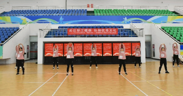 活动现场,展示队员们身着统一服装,动作整齐划一,招式舒展大方,透露出传统气功的独特韵味,彰显了中华传统文化的韵律美与和谐美,生动体现了机关职工团结协作、积极向上的精神风貌。
