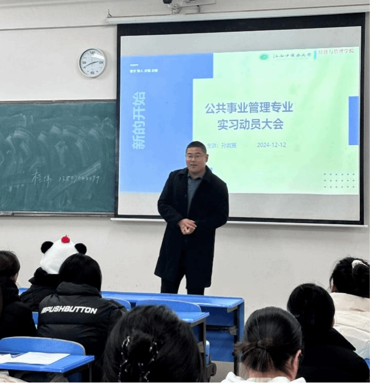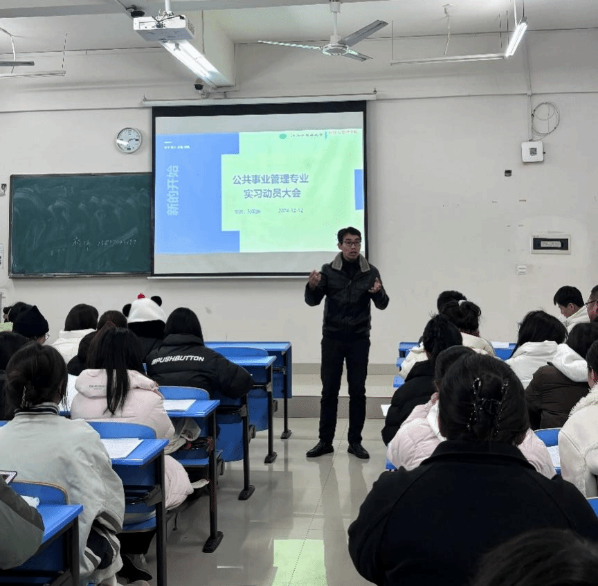 江中新闻网讯(学生记者 吕欣霞)为确保2025届本科毕业生实习工作顺利进行,经济与管理学院于12月12日下午在学校湾里北区教室召开2025届本科毕业论文撰写暨毕业实习动员大会。学院学生工作负责人、各专业负责人以及2025届公共事业管理、健康服务与管理专业全体学生参加会议。