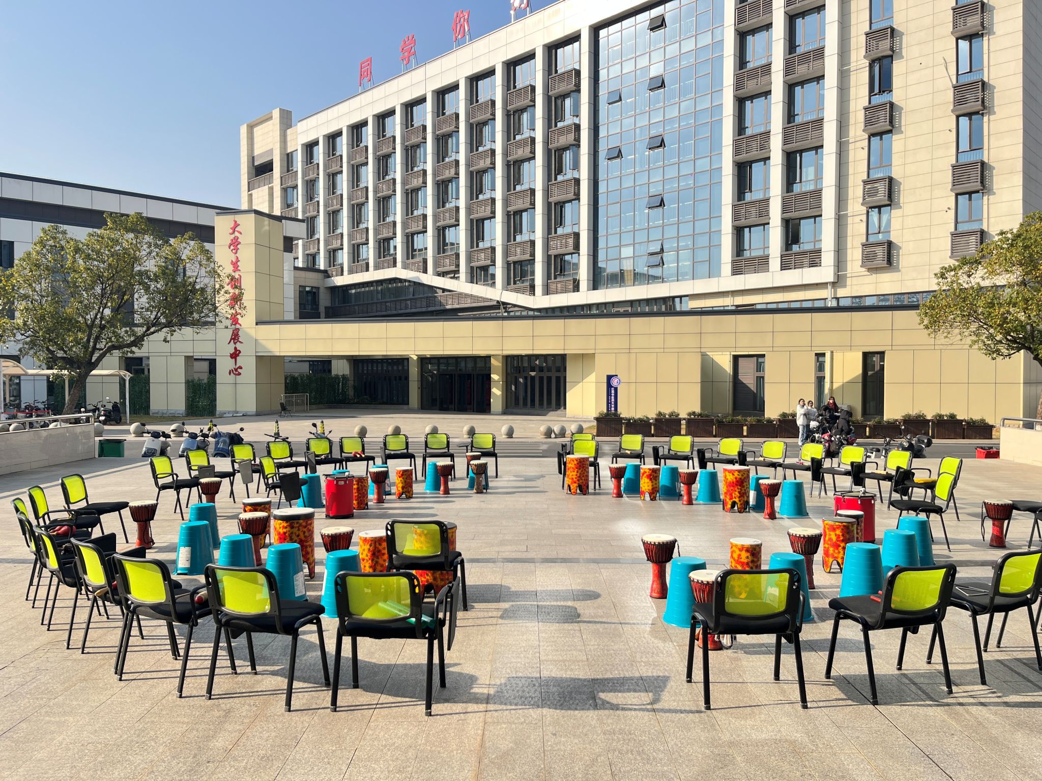 活动现场,参与者环绕成一圆,手中握着各种打击乐器。在鼓圈引导师的引导下,大家体验了演奏打击乐器所带来的触觉、听觉以及感觉上的微妙变化,从而触及了内心真实的自我。大家彼此协作、相互激励,不断探索与创新,共同创作出丰富多彩的音乐篇章。随着节奏敲击乐器,时而敲击、时而暂停,鼓声和谐共鸣,营造出热烈的氛围。