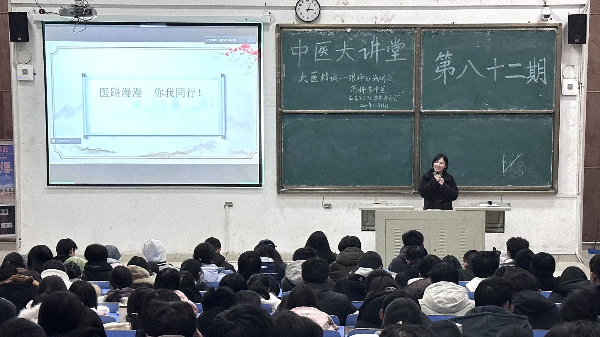 江中新闻网讯(通讯员 胡栋梁 邹慧)为引导学生深入理解中医学习之道,体会临床实践与理论结合的重要性,激发学生对中医经典研读的热情,12月14日,临床医学院于知行楼T4阶梯教室举办以“大医精诚-跟师让我明白怎样学中医”为主题的第八十二期中医大讲堂活动。永康市中医院副主任医师蒋思思做客本期讲堂。