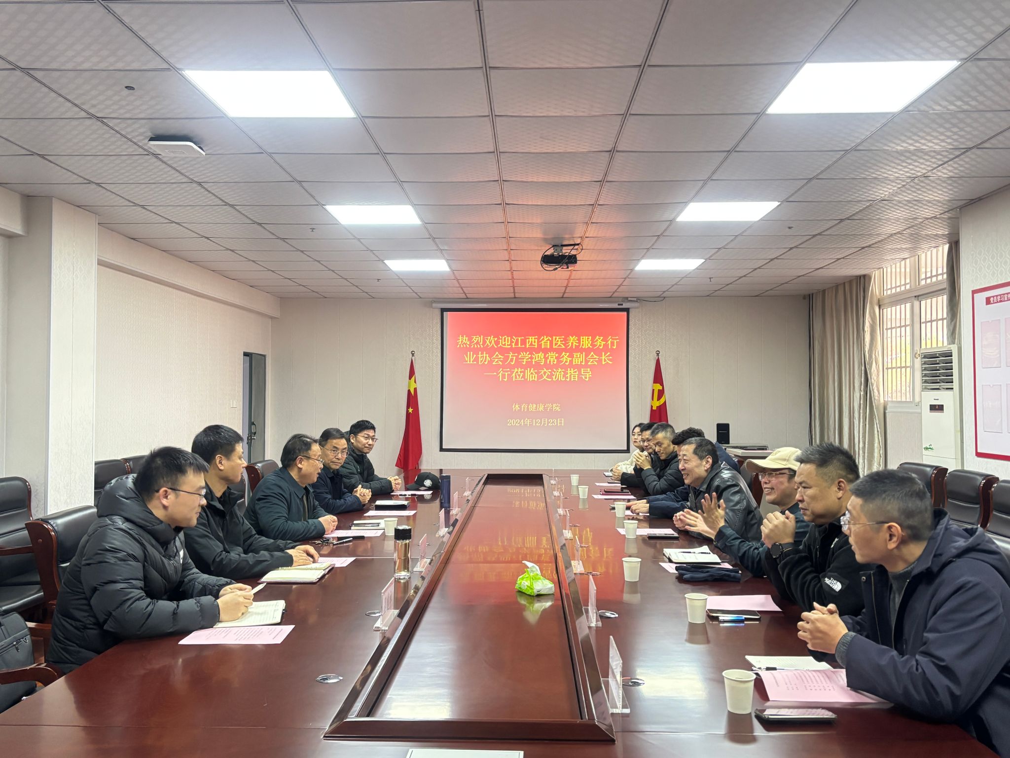 江中新闻网讯(通讯员 罗欢)12月23日,江西省医养服务行业协会(以下简称协会)方学鸿常务副会长一行莅临学校体育健康学院进行交流座谈。学院在家党政领导班子及学生管理办公室负责人等出席了座谈会。