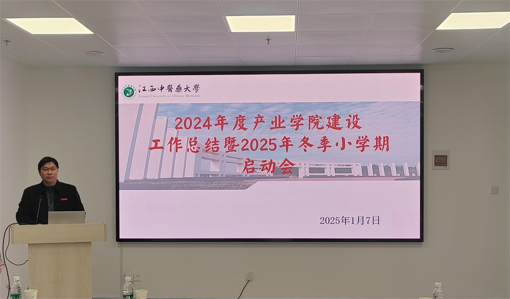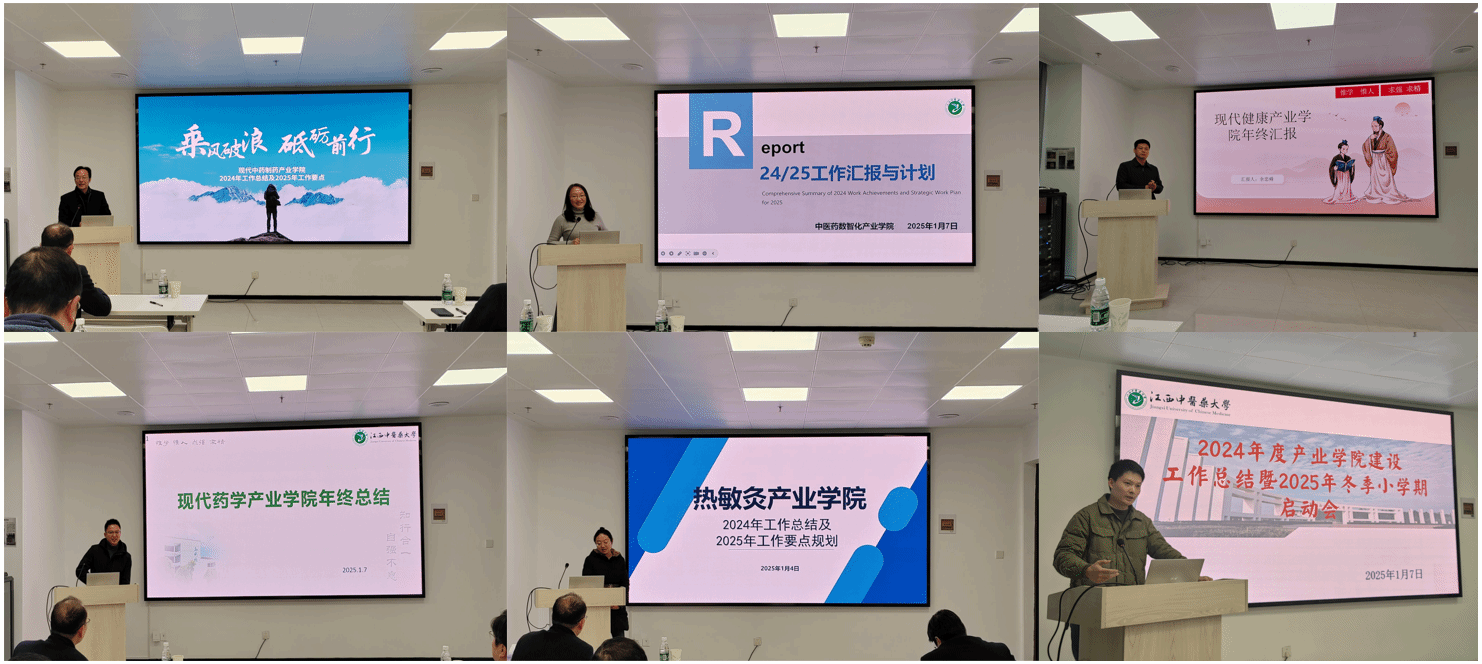 江中新闻网讯(通讯员 张敬 唐雅琴)1月7日,2024年度产业学院建设工作总结暨2025年冬季小学期启动会在大学生创新发展中心101室召开。学校现代产业学院,以及现代中药制药产业学院、现代药学产业学院、热敏灸产业学院、中医药数智化产业学院、现代健康产业学院院长和部分师生代表参加会议。