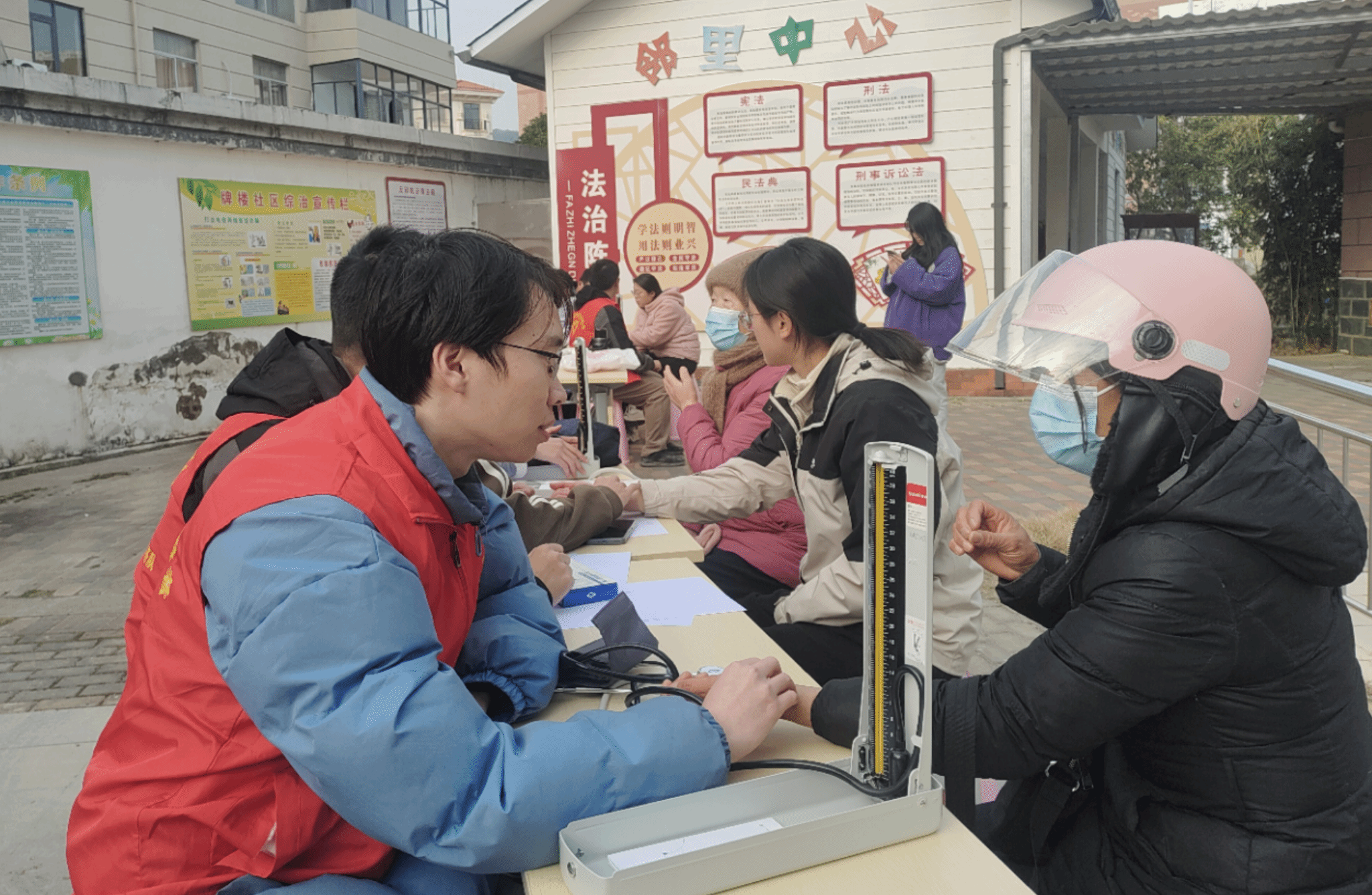 活动现场,学生党员们为社区居民提供血压测量、推拿按摩以及艾灸等具有中医特色的健康服务,耐心解答社区居民的健康问题,从生活习惯、日常饮食等方面给予健康指导,帮助居民们树立健康生活意识。