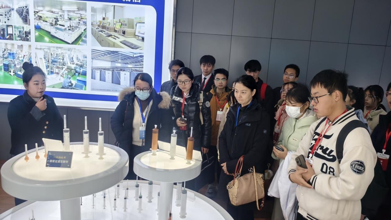 活动伊始,同学们前往江西洪达医疗器械集团。现代化生产车间里,精密机械高效运转,医疗器械的生产流程完整呈现。从原材料加工到成品组装,标准化与自动化的生产模式,让同学们直观感受到医疗产业的蓬勃发展与科技创新力量,对医疗设备制造有了全新认知。