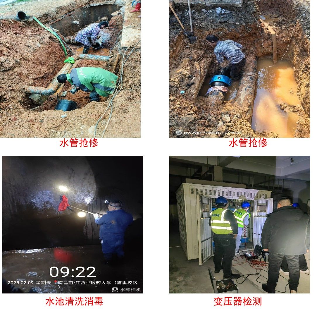 寒假期间,后勤对校园的供水管网进行了强化排查,先后排查抢修了漏水点8处,有效地减少了自来水的浪费,确保了校园正常供水。同时对图书馆、教学楼等地的变压器进行了专业检修,增强了供电保障能力。