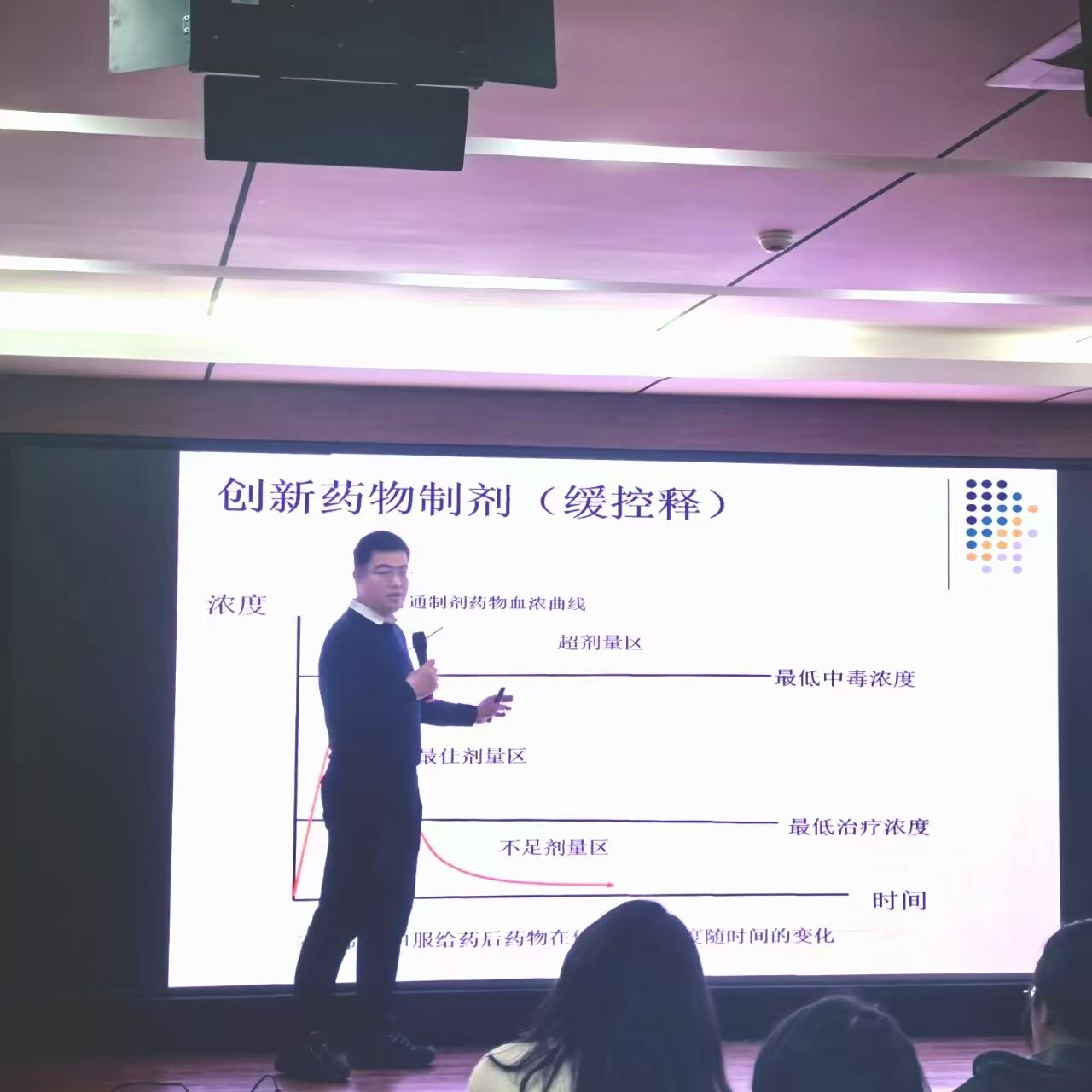 涂亮星以广受消费者喜爱的江中牌健胃消食片为切入点,深入浅出地分析了其备受青睐的原因,并揭示了其中蕴含的独特制剂技术。随后,他又以胰岛素制剂的发展历程为例,从最初的普通注射剂到胰岛素泵、胰岛素粉末,再到胰岛素纳米颗粒,详细阐述了制剂技术的不断革新与进步,激发了同学们对制剂技术的浓厚兴趣。