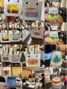 活动现场,工会精心准备了制作香薰蜡烛的丰富材料,大家在轻松愉悦的氛围中充分发挥创造力,亲手制作独一无二的香薰蜡烛。同时,新鲜水果、美味饮料和精致蛋糕摆满了桌面,大家一边制作香薰蜡烛,一边聊天畅饮,欢声笑语回荡在整个会议室。本次活动不仅让大家在繁忙的工作之余放松了身心,感受手工制作的乐趣,也进一步增强了团队凝聚力,促进了同事间的情感交流。