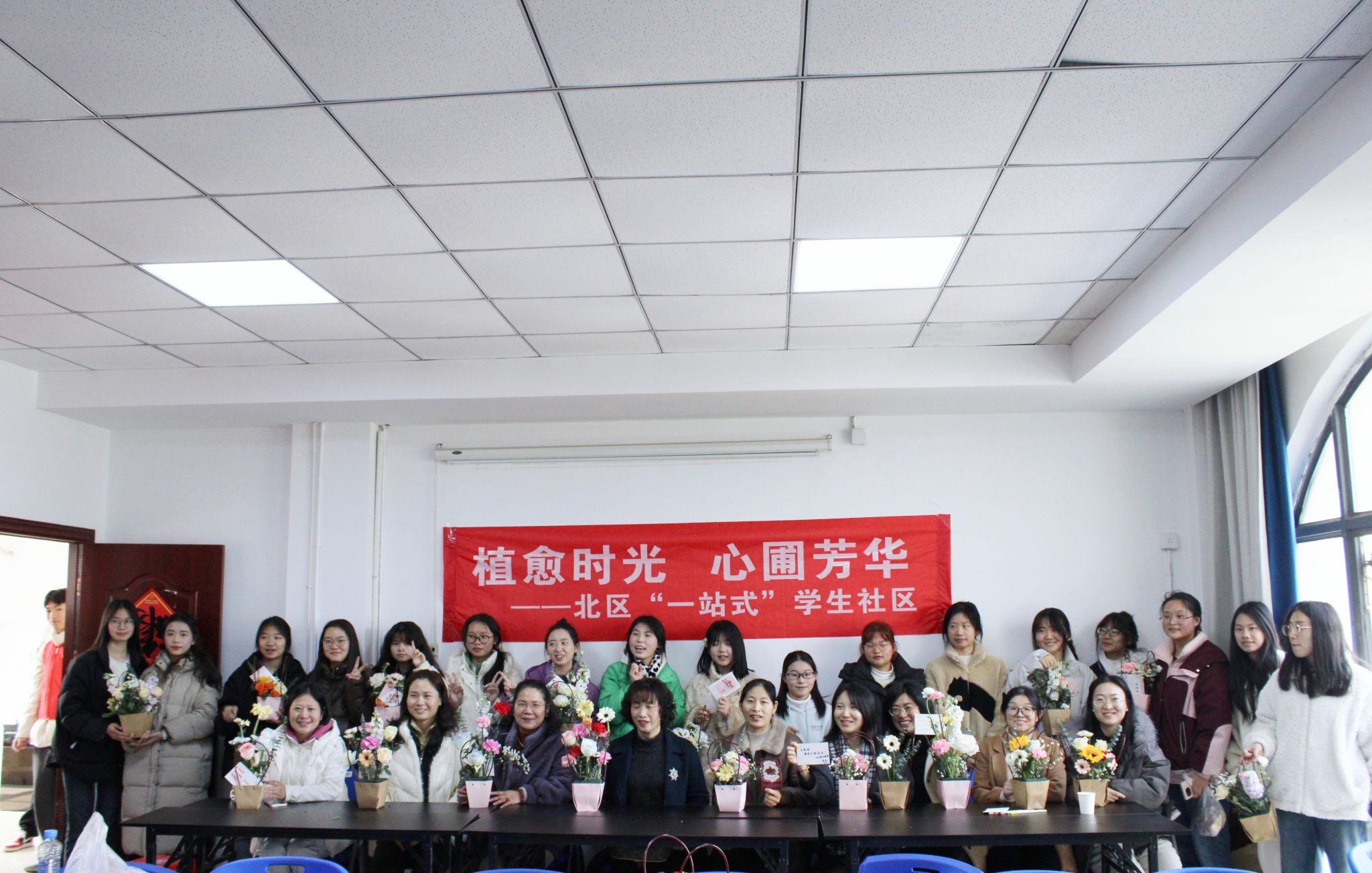 江中新闻网讯(通讯员 黎玲)春暖三月,花季不朽。为进一步深化“三全育人”实效,将心理健康教育融入“一站式”学生社区生活场景,3月7日下午,经济与管理学院以花艺为媒介,在北区“一站式”学生社区打造沉浸式美育课堂,举办“植愈时光,心圃芳华”师生合作插花活动,引导女生在感知草木灵性中唤醒自我成长力量,此次活动共吸引八十余名师生参与。