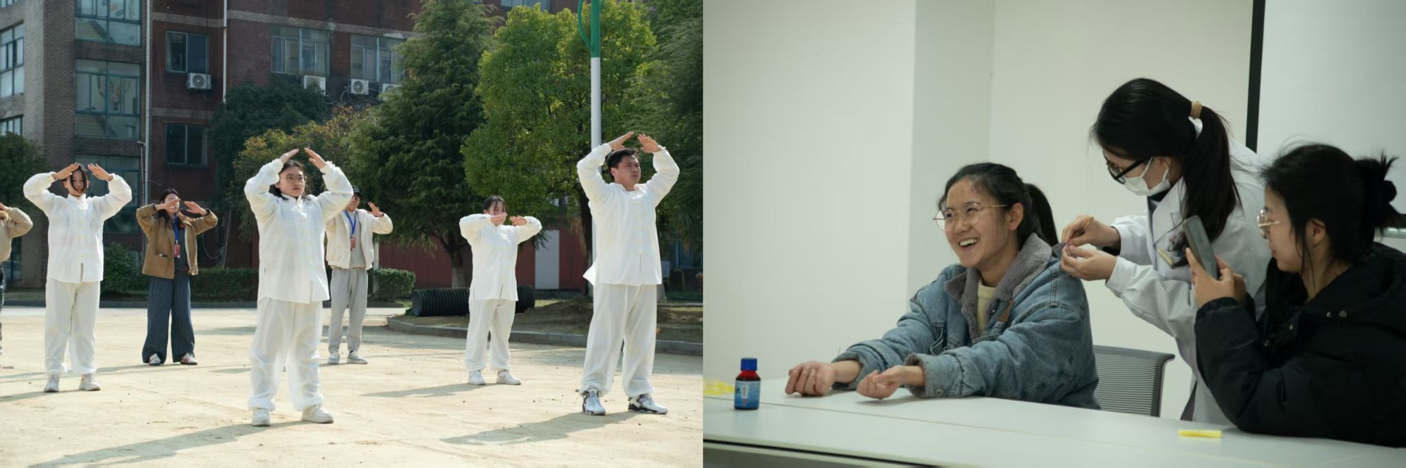“平时工作压力大,肩颈经常酸痛,今天体验了针灸推拿,感觉整个人都轻松了不少。”一位参与体验的老师感慨道。志愿者们不仅为师生们提供了专业的诊疗服务,还耐心解答了他们的健康疑问。