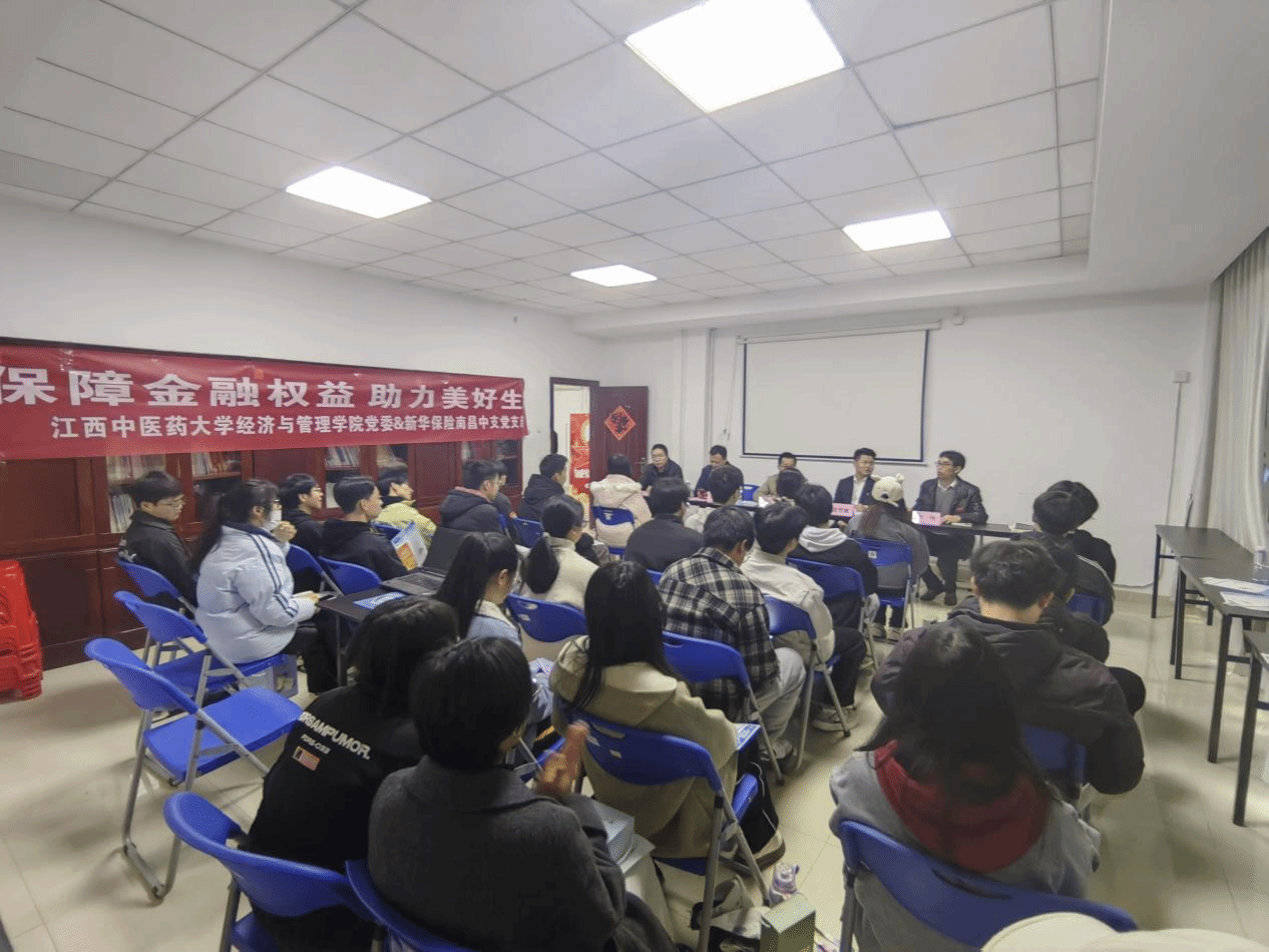 江中新闻网讯(通讯员 李超超)为提升大学生金融素养,有效防范金融诈骗,3月14日下午,经济与管理学院联合新华保险南昌中支在北区 “一站式”学生社区成功举办了以 “保障金融权益,助力美好生活”为主题的校企支部共建活动,学院副院长、学生工作负责人、企业代表及学生党员代表共计40余人参与了活动。