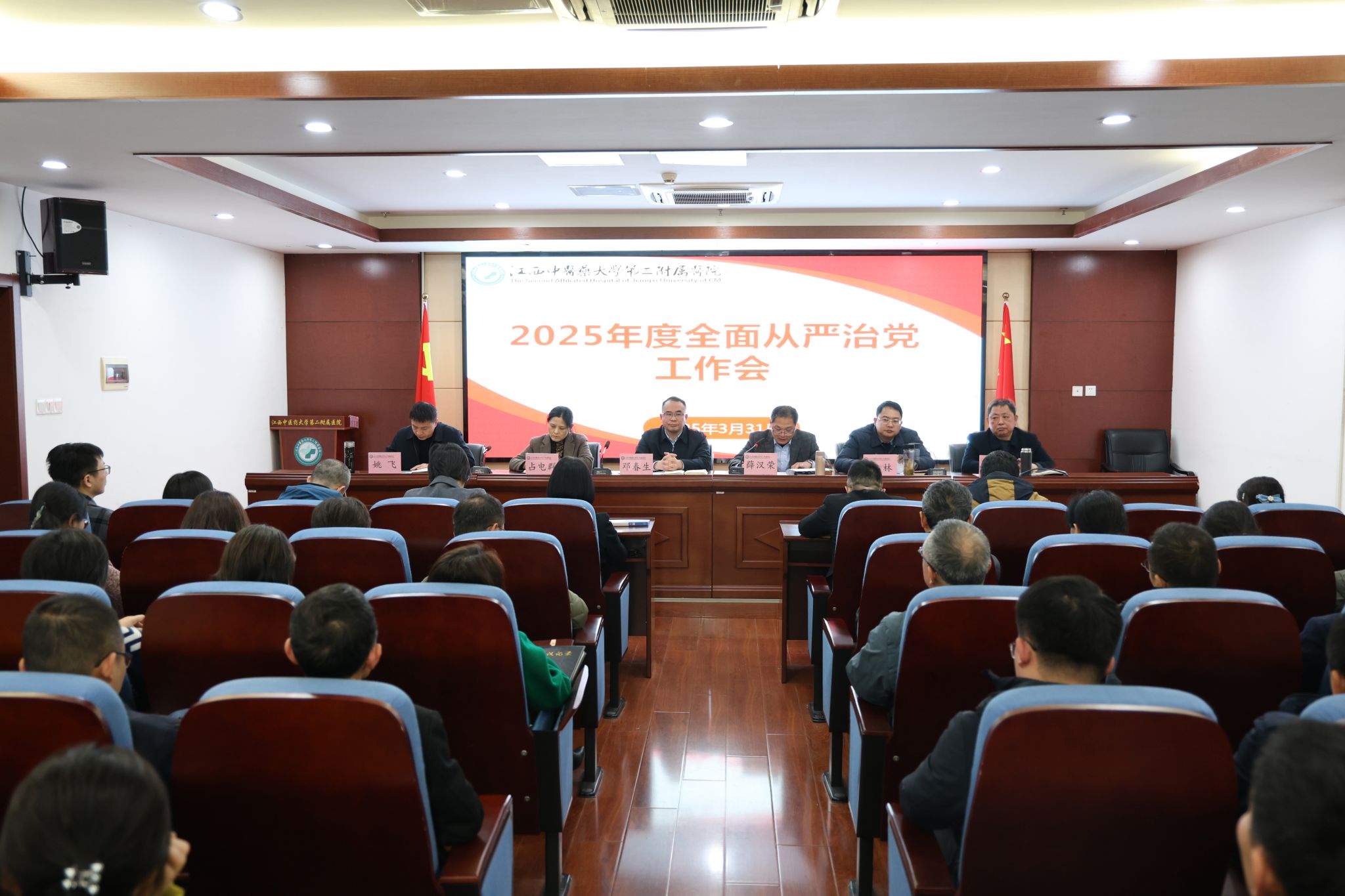 江中新闻网讯(通讯员 王喜莲)3月31日下午,二附医院党委召开2025年全面从严治党工作会议,总结2024年全面从严治党工作及成效,部署2025年工作任务。医院党委书记出席并讲话,党委副书记、院长主持会议,全体班子成员出席会议,医院纪委委员、护士长以上干部参加会议。