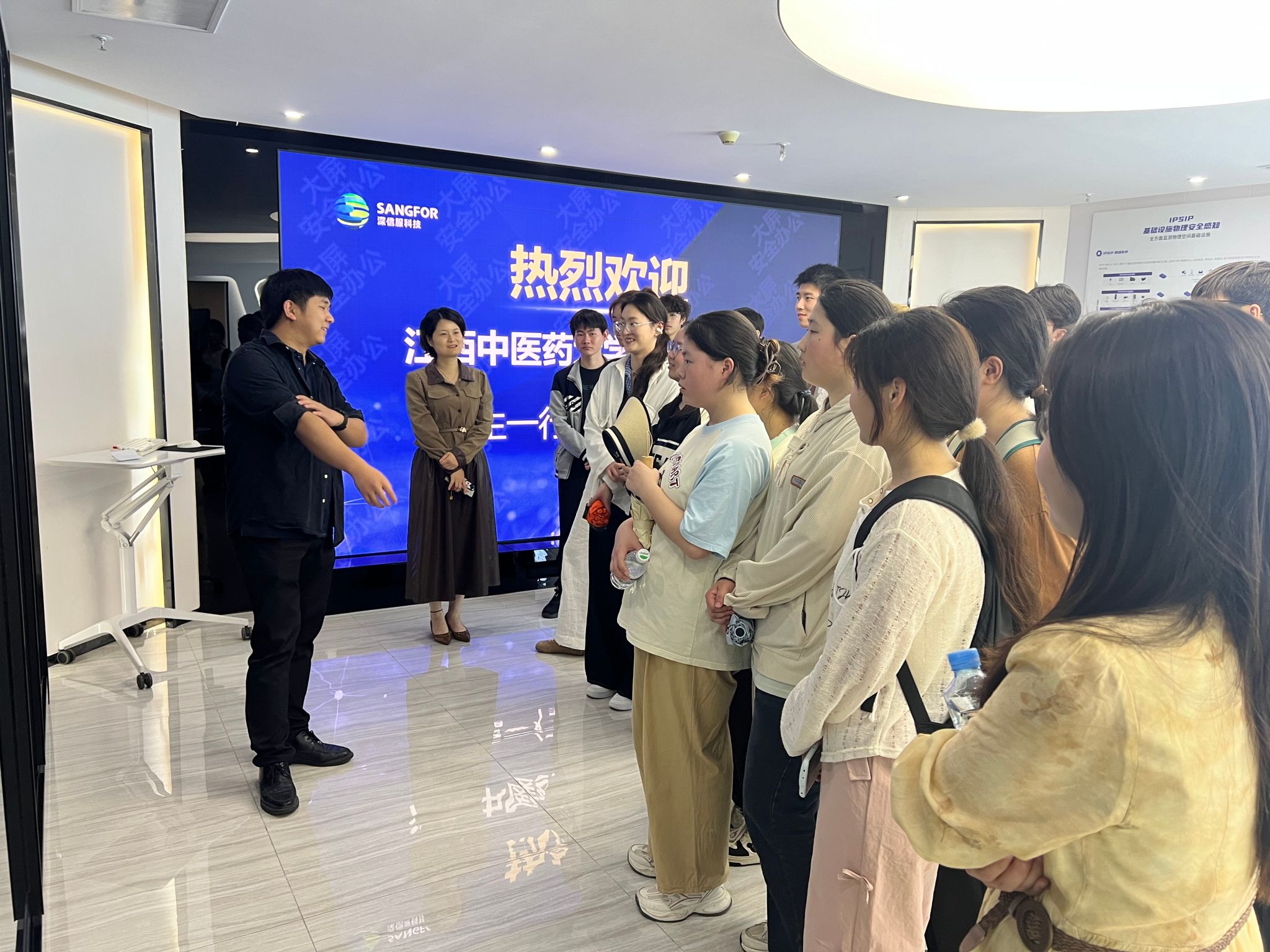 深信服江西分公司负责同志带领我院师生参观了深信服产教基地的科技展厅、培训中心,详细介绍了深信服的发展历程、核心技术、产品服务以及在网络安全和云计算领域取得的成就。同学们对深信服在技术创新和行业应用探索方面产生浓厚兴趣及学习意愿。