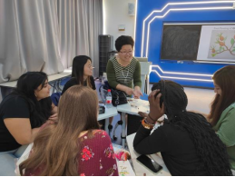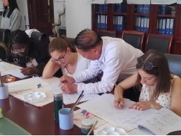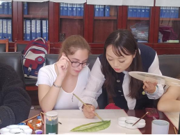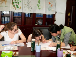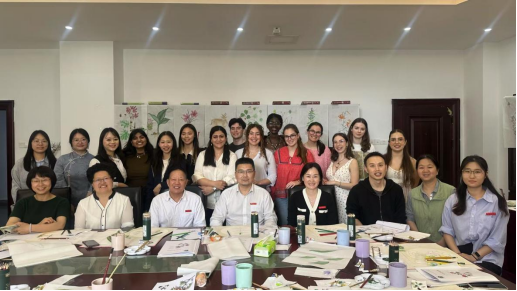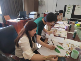 18日下午,留学生们上中药美绘课程,袁春林老师讲授如何采用“主线式构图”画一枚叶子、“过渡式上色”绘整个植物或药材。留学生对中国画表现出浓厚兴趣,全身心沉浸在美的体验中。通过“体验、实践、领悟、深化”教学模式,在轻松、愉快的氛围中体验中国画的笔墨韵味,感悟中国画的内在精神。在绘画的过程中巩固专业知识,在美育浸润工作中坚持向美而行,构建“以美润心、以美培元”育人模式,达到育人潜移默化、立德润物无声。