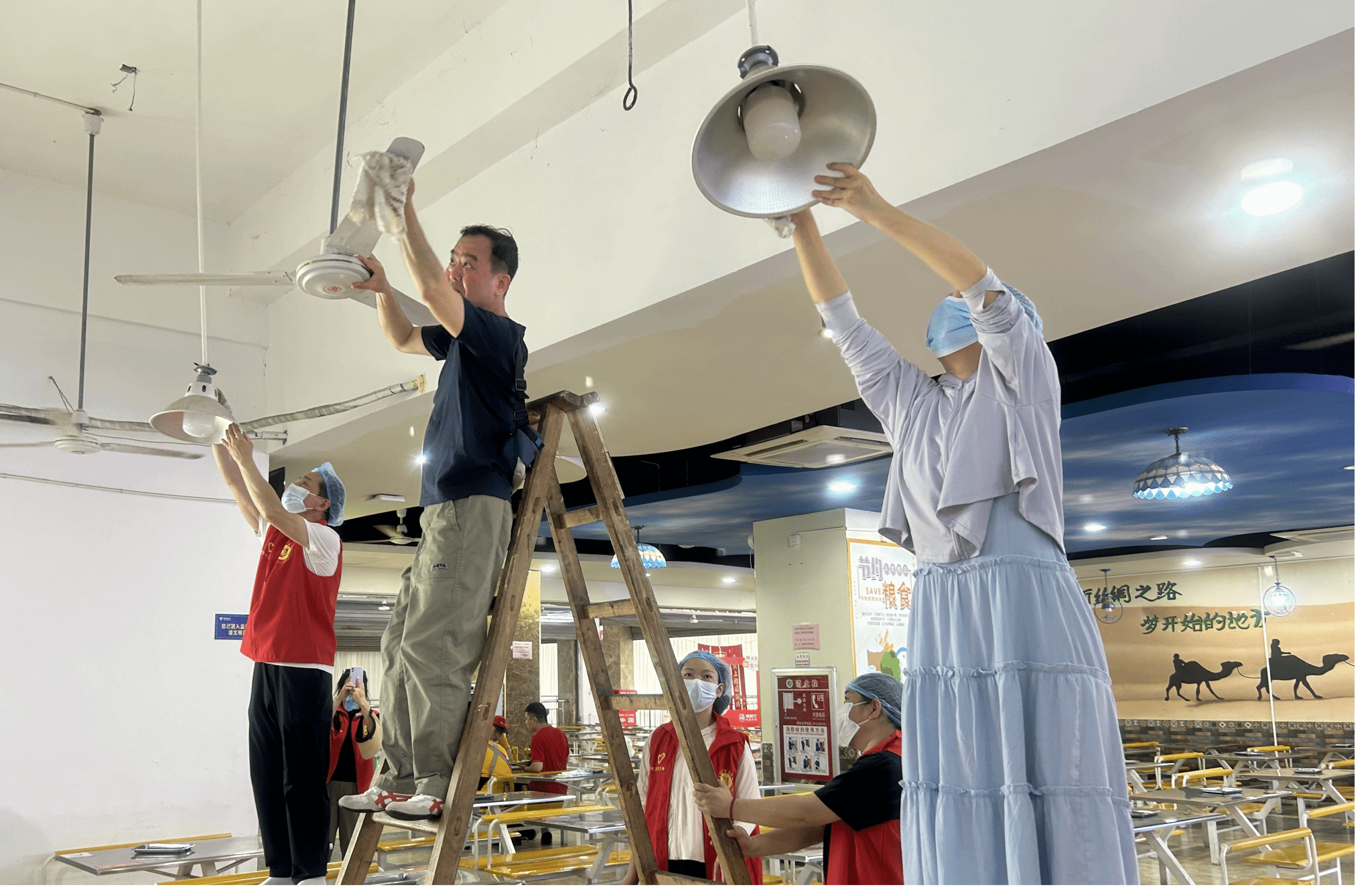 会后,全体党员前往民族餐厅,以“党建+服务”模式开展志愿帮扶,既回访整改问题,又清扫卫生,以实际行动优化就餐环境,彰显党员担当。