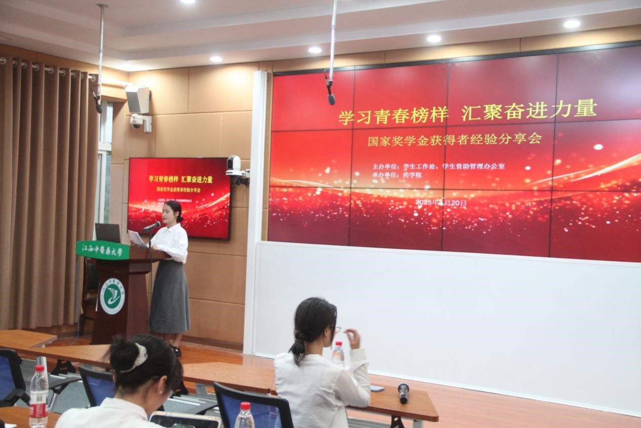 江中新闻网讯(通讯员 吴莹莹)为发挥国家奖学金获得者的示范引领作用,激发青年学子的奋斗热情,5月20日,由学工处、资助办主办,药学院承办的“学习青春榜样、汇聚奋斗力量”经验交流分享会在立德楼举办。四位来自药学院和经管学院的国家奖学金获得者结合自身经历讲述奋斗故事,为现场百余名观众呈现了一场充满青春励志的视听盛宴。