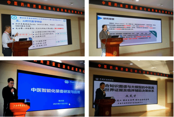下午的“中医药高质量证据技术研究论坛”亮点纷呈。遵义医科大学附属医院肖政团队分享“AI赋能循证转化探索”,提出以“问题/需求—知识—转化—实践”为核心逻辑的循证医学创新路径;江西中医药大学易惺钱团队聚焦生长激素(rhGH)治疗儿童生长发育疾病,详解其适应症、剂量规范及临床应用注意事项;中国科学院电子研究所耿兴光团队介绍中医智能化装备研发进展,通过新一代四诊仪数字化、标准化、智能化,破解中医药发展卡脖子问题;中国中医科学院中医药数据中心文天才研究员分享“融合知识图谱与大模型的中医真实世界证据及临床辅助决策体系”,为中医药循证研究与临床决策提供智能化解决方案。