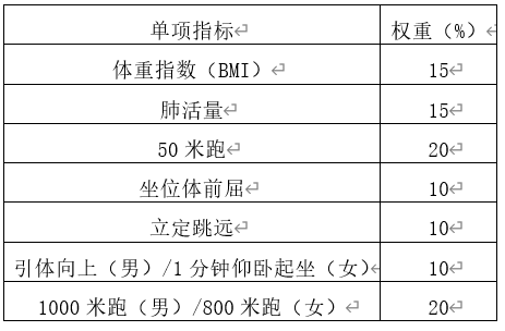 《国家学生体质健康标准(2014年修订)》单项指标与权重