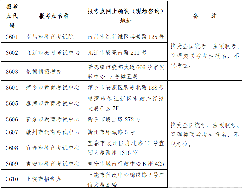注:(1)就读高校已设报考点的普通全日制应届本科毕业生应在9月24-27完成报考;(2)报考成功以完成缴费为准;(3)报考点地址如有变动,以各报考点最新公告为准。